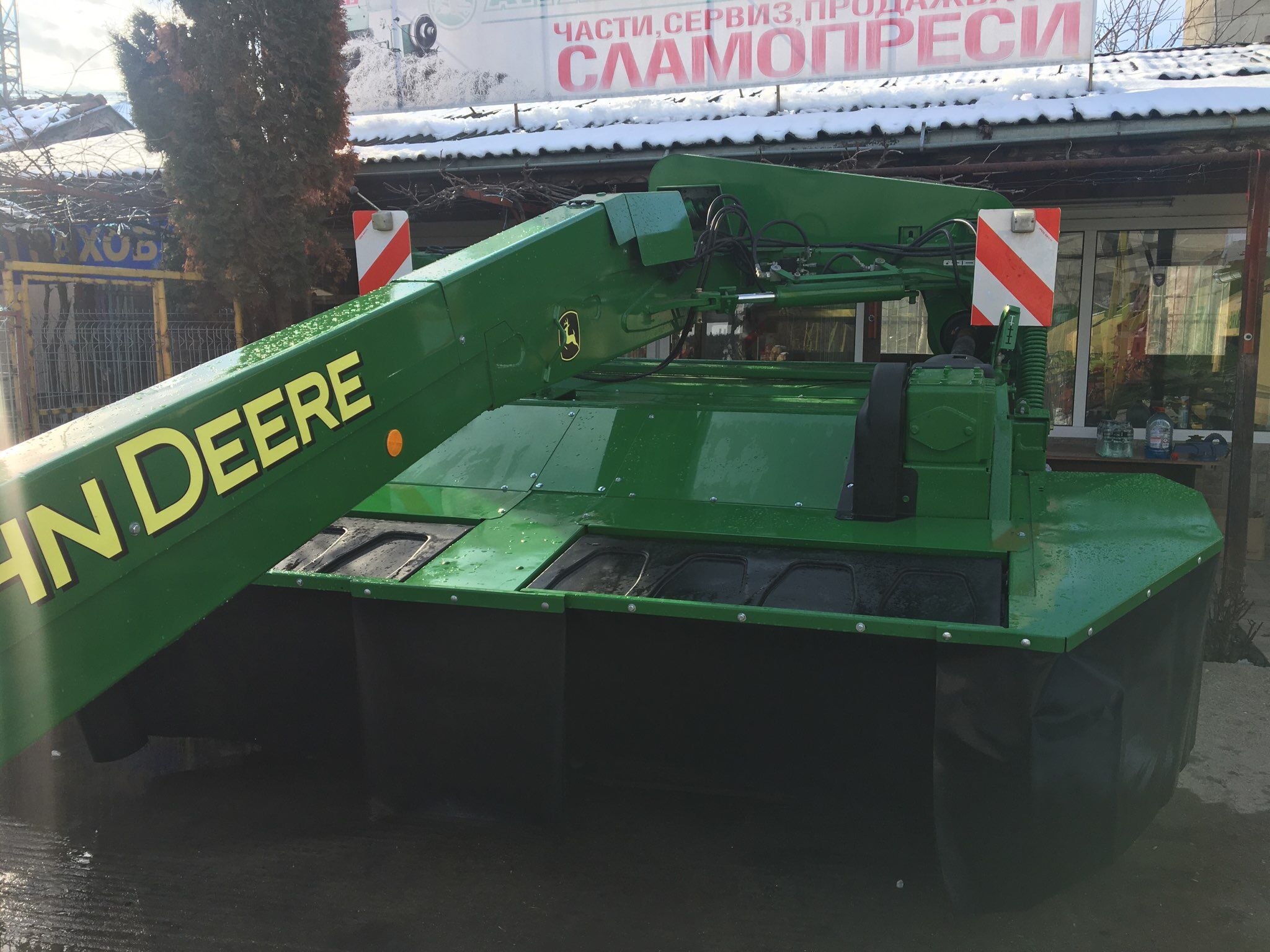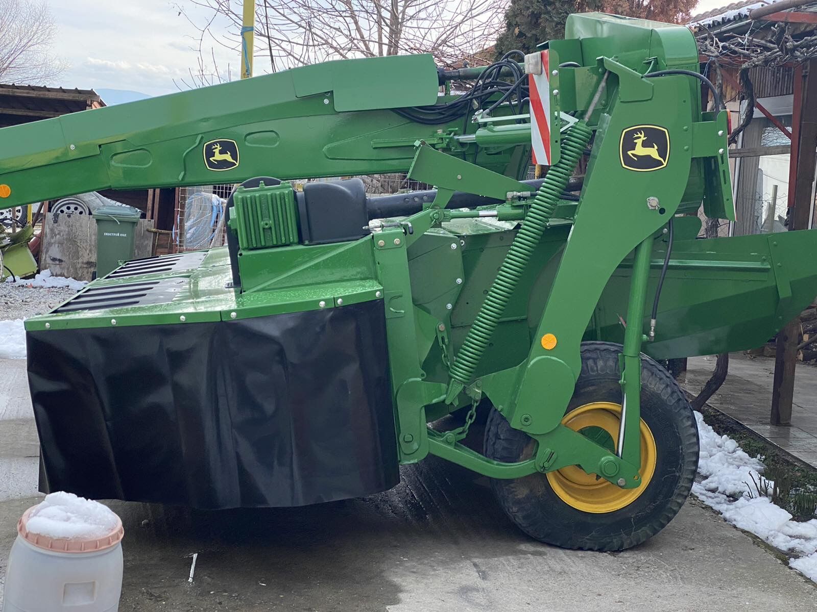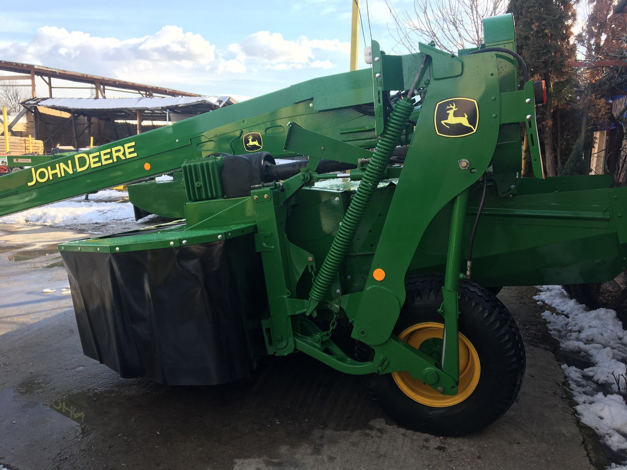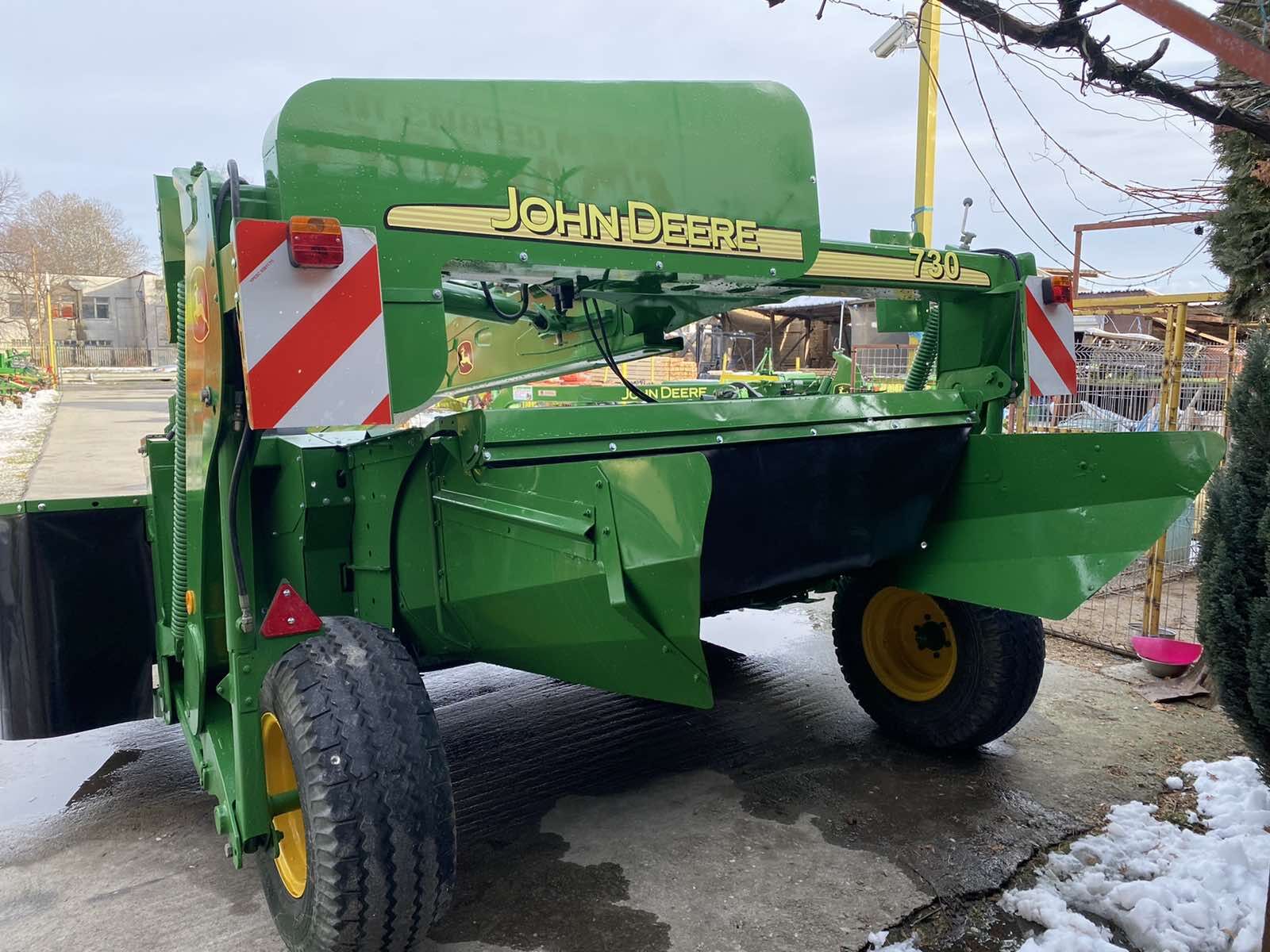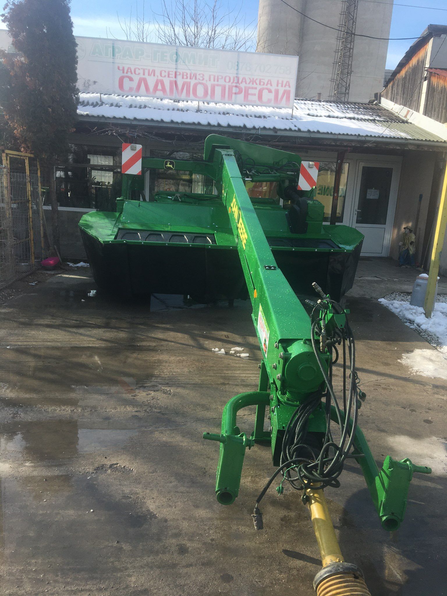 Агропарк – Геомит – с. Труд Ви предлага прикачна косачка Джон Диър 730. Централен кардан. Работна площ на косене – 3 м. Височина на отрязване от 10 до 120 мм. Дискове – 6 бр с 12 бр обратими и прибиращи се ножчета. Оборудвана с кондиционер с 45 бр В-образни чукове. Необходима мощност на трактора – 100 к. с. Скорост на въртене на дисковете 2650 оборота в минута. Година на произдвоoство – 2008г