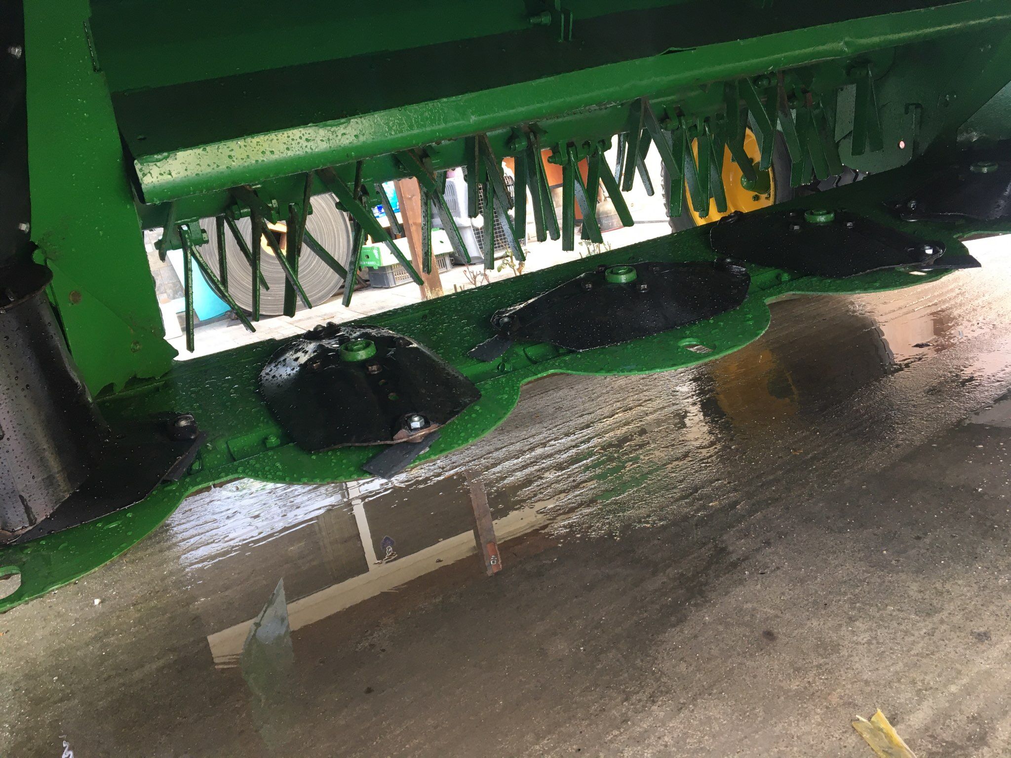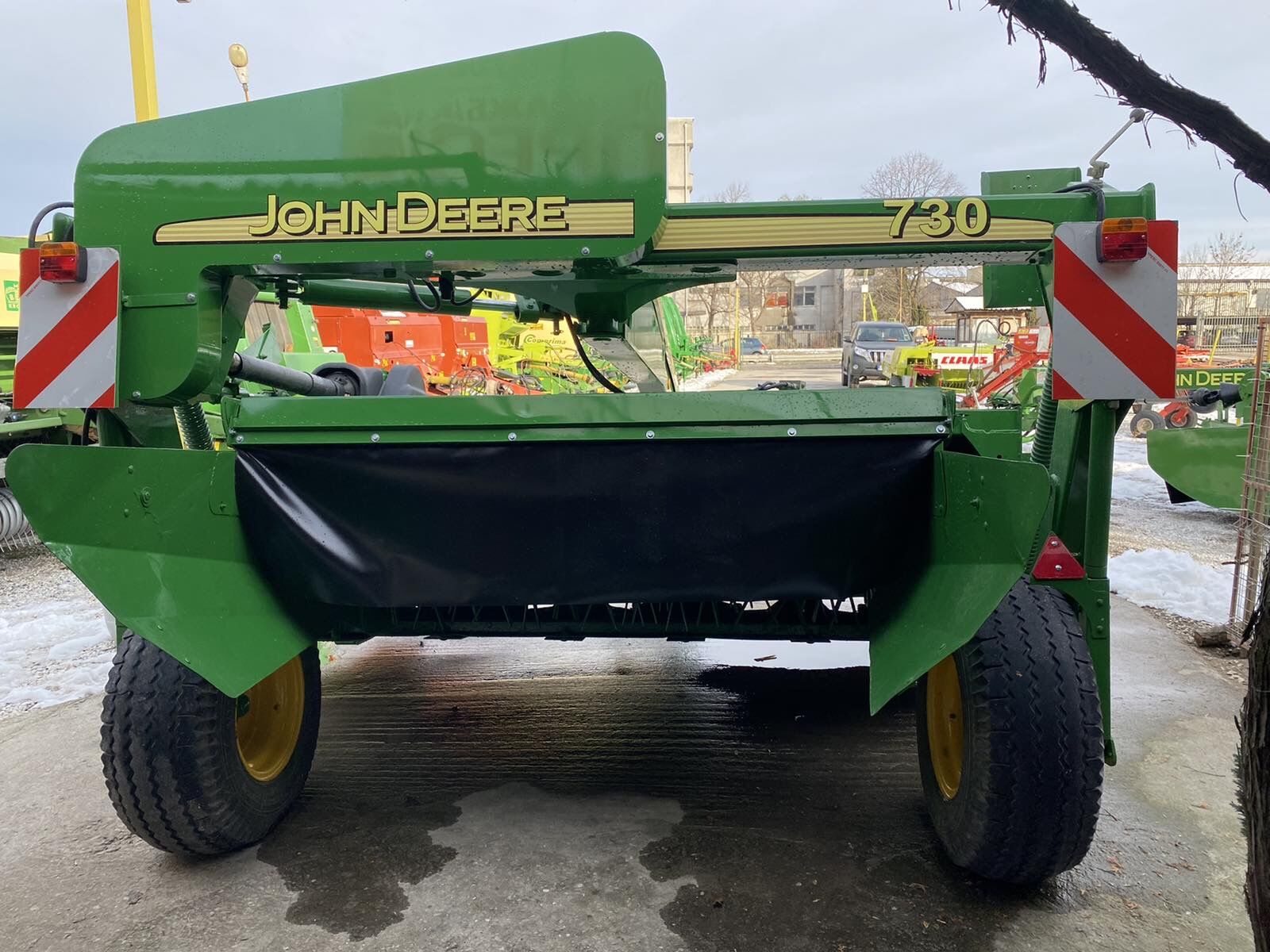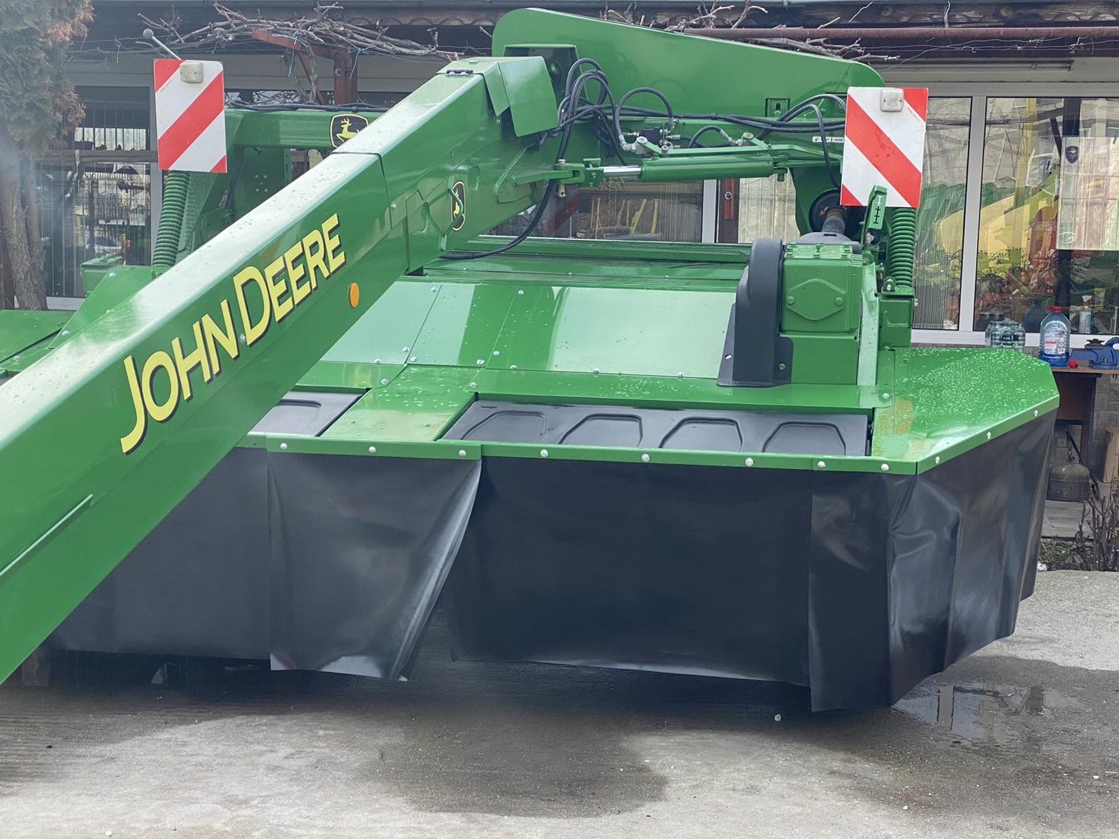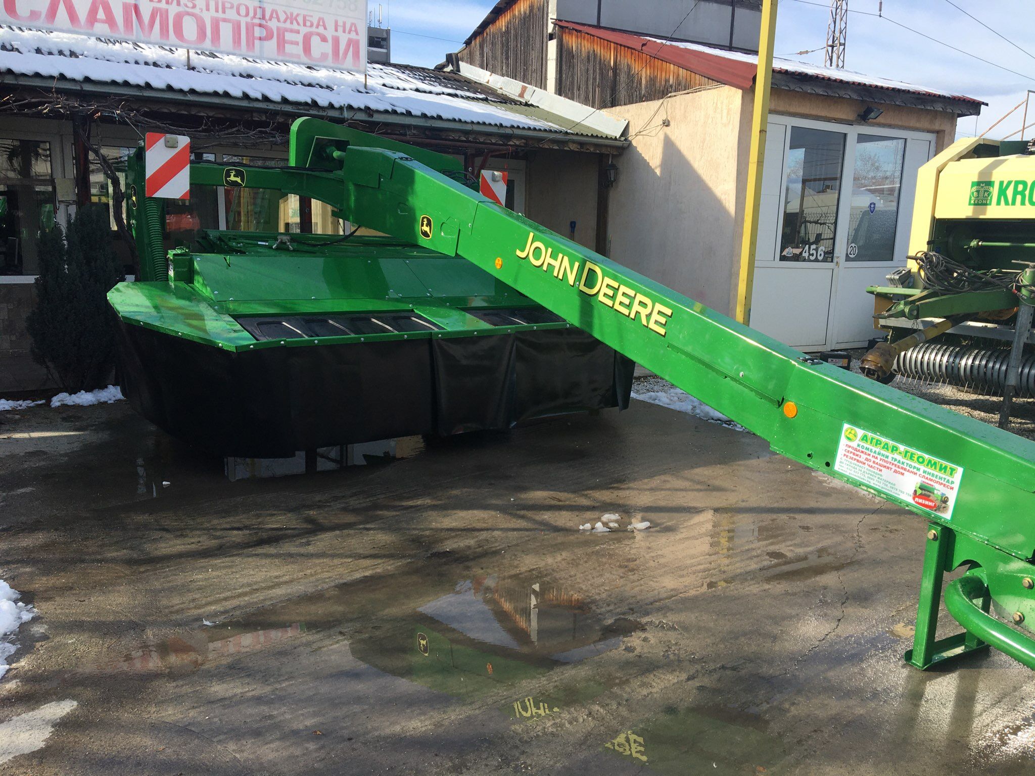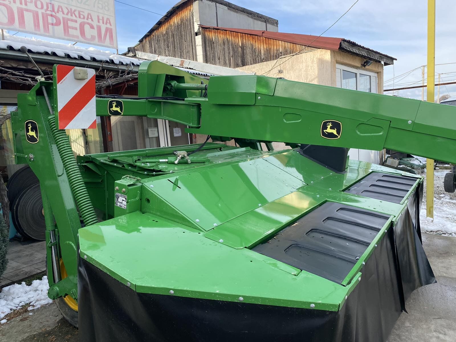 Агропарк – Геомит – с. Труд Ви предлага прикачна косачка Джон Диър 730. Централен кардан. Работна площ на косене – 3 м. Височина на отрязване от 10 до 120 мм. Дискове – 6 бр с 12 бр обратими и прибиращи се ножчета. Оборудвана с кондиционер с 45 бр В-образни чукове. Необходима мощност на трактора – 100 к. с. Скорост на въртене на дисковете 2650 оборота в минута. Година на произдвоoство – 2008г