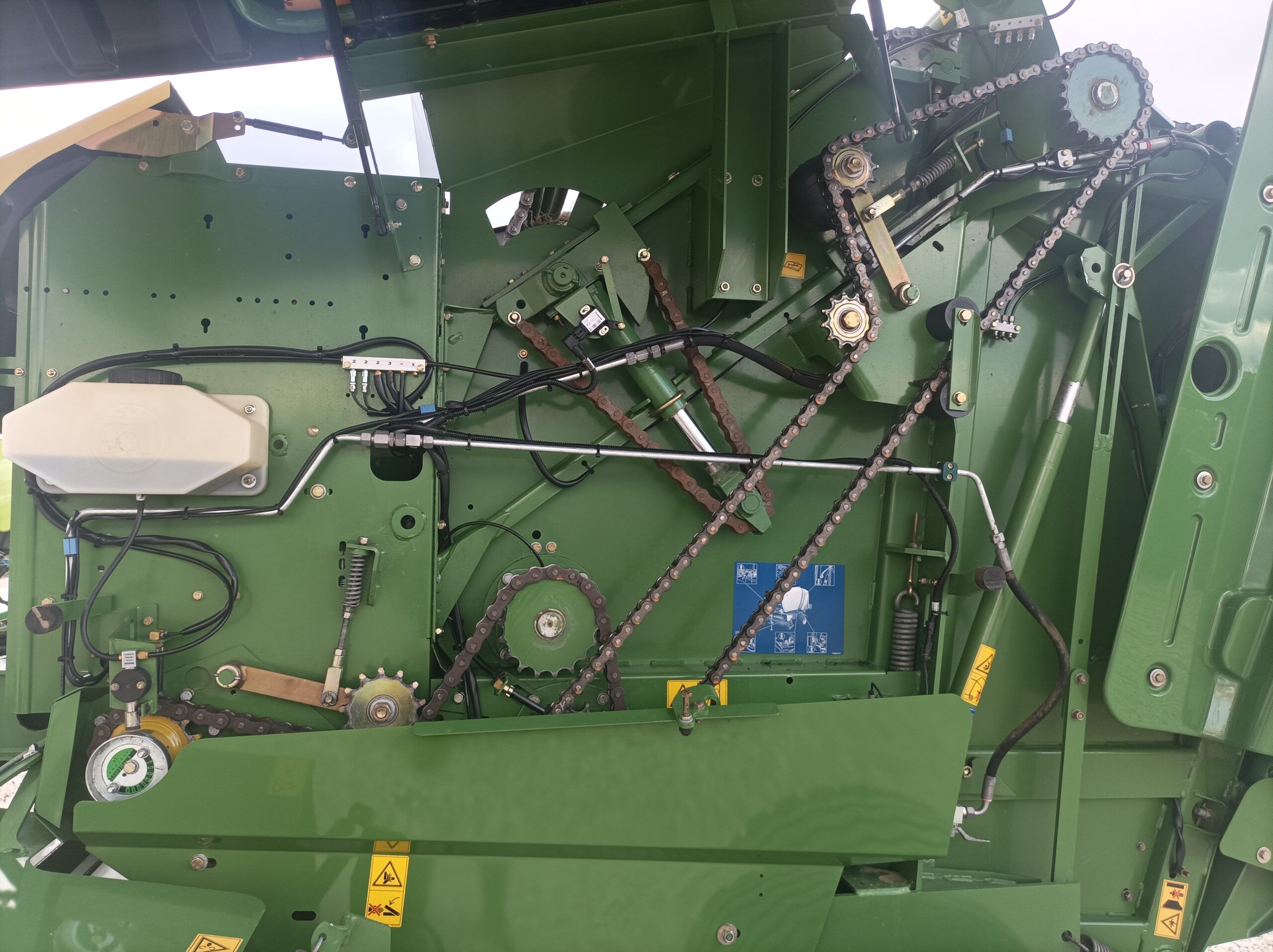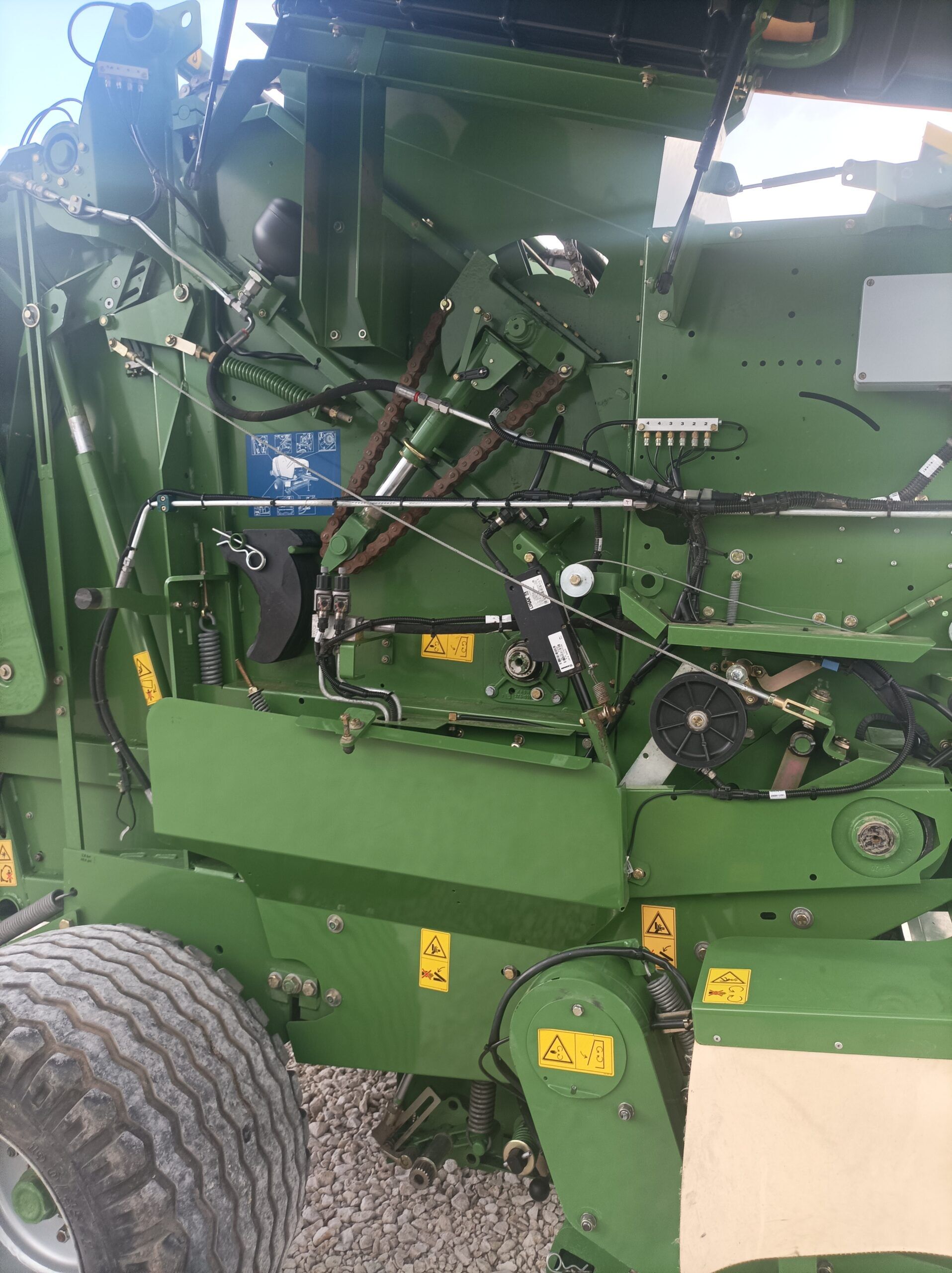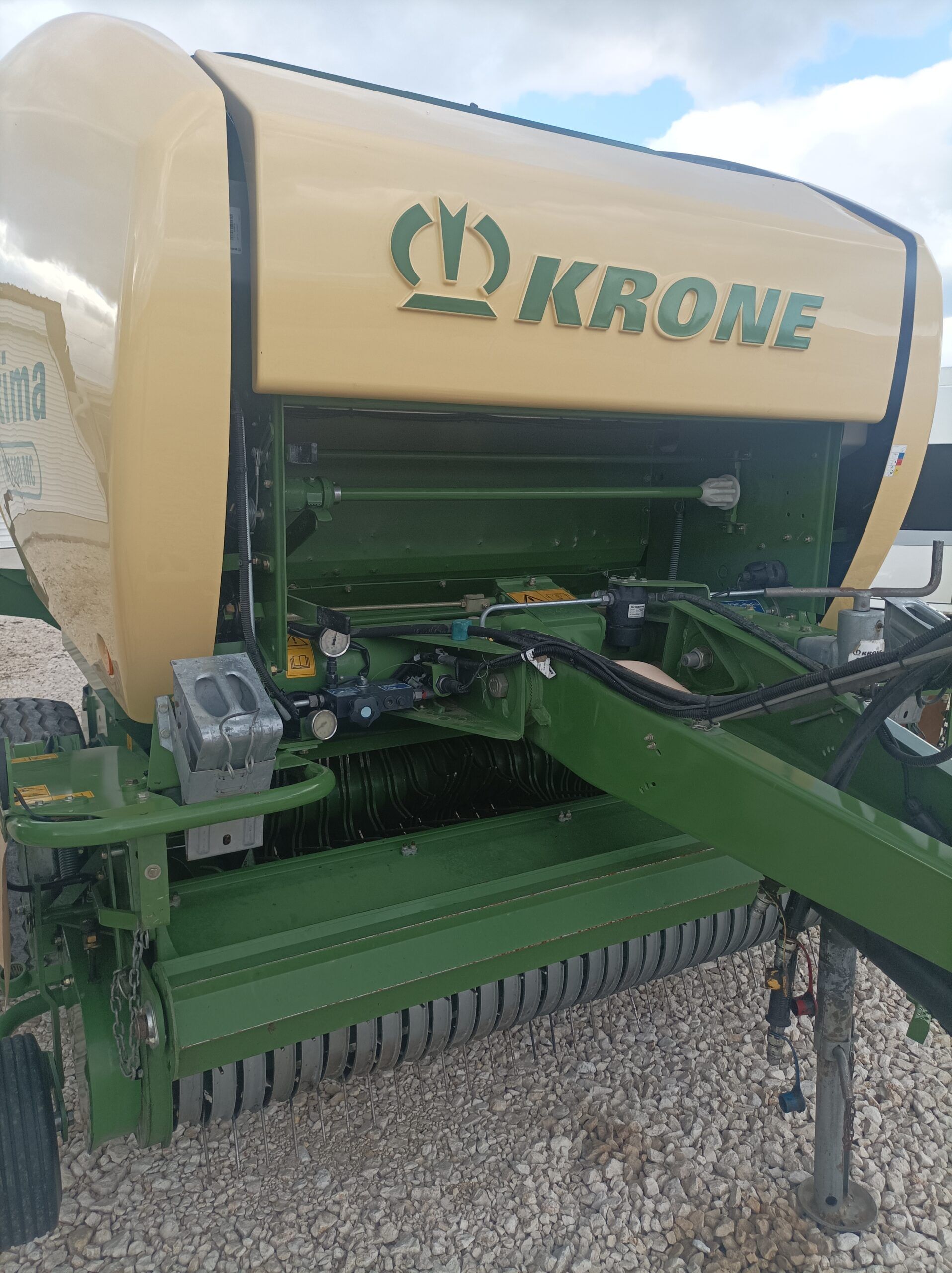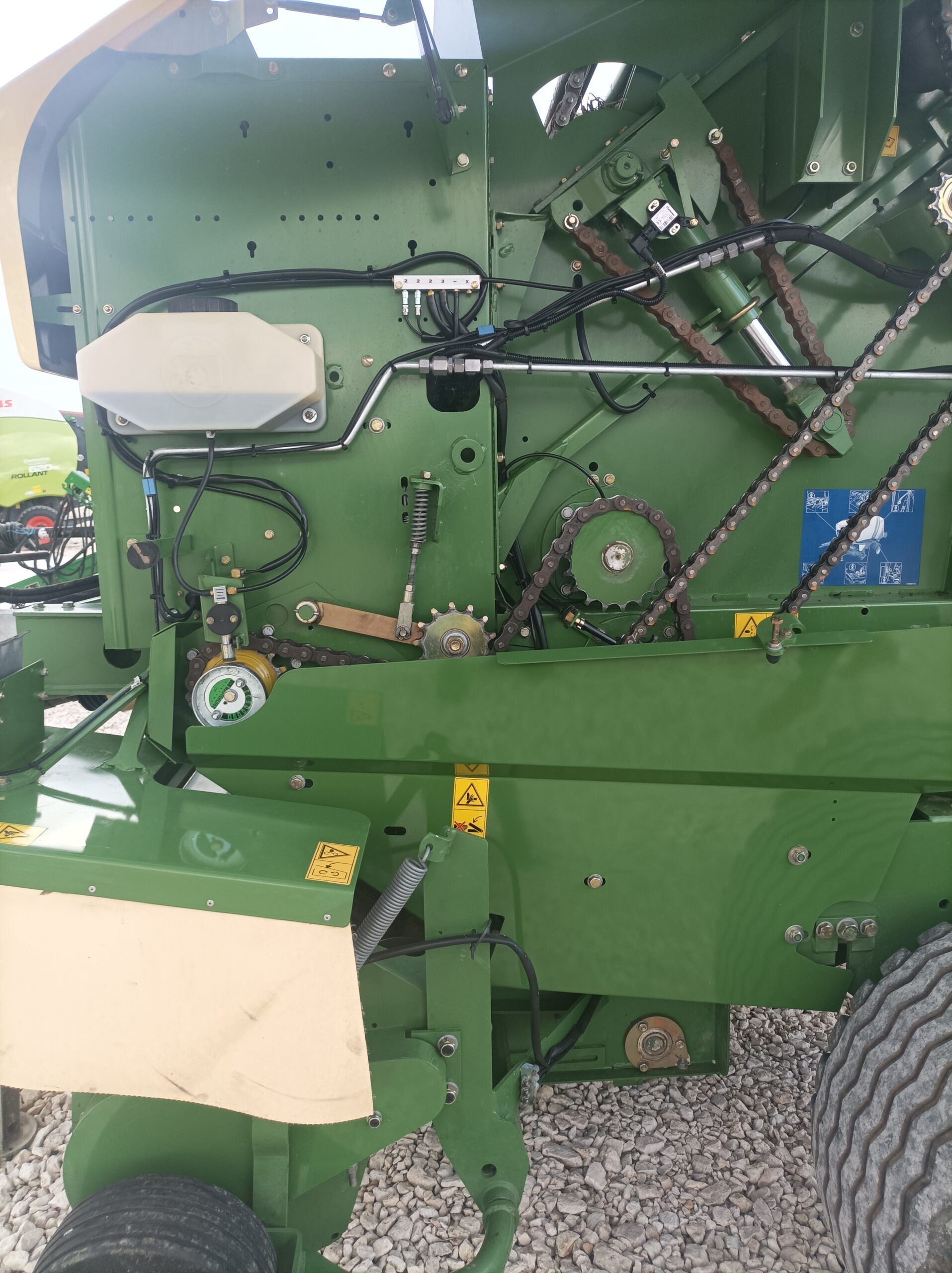 Готова за работа, обслужена, перфектна. Регулируема камера – за малки и големи бали. Широк хедер – 2, 20 м. Централно мазане. Вал за бързо и равномерно прибиране на масата оборудван с 17 ножа за надробяване на масата на ситно.Изхвърляч за балите.